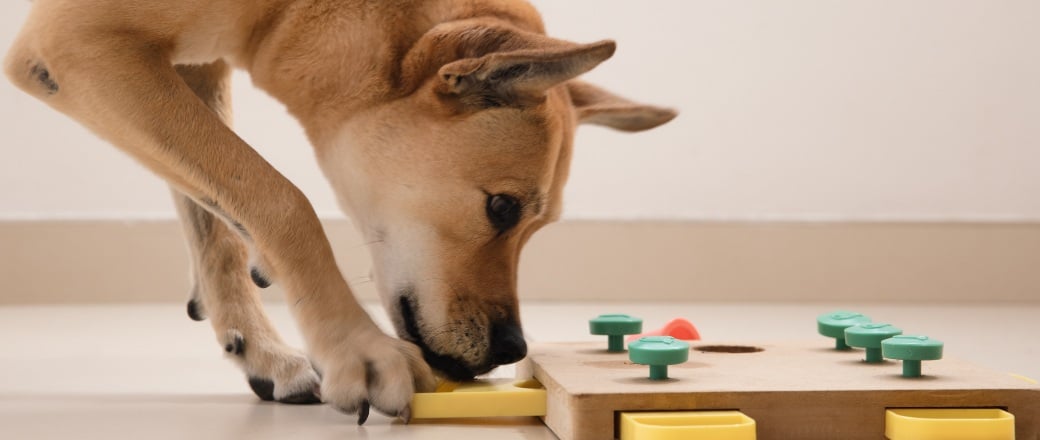 Puzzles of any kind can help activate your pet’s brain, improving their mood and cognitive abilities. Puzzle mats for fast-eating pets are a great option, but puzzles can be created with household items as well, such as toilet paper or paper towel rolls, scissors, and some tape. Dogs and cats enjoy the challenge of finding an object or treat and being rewarded with it at the end, so make sure any homemade puzzles aren’t overly challenging.